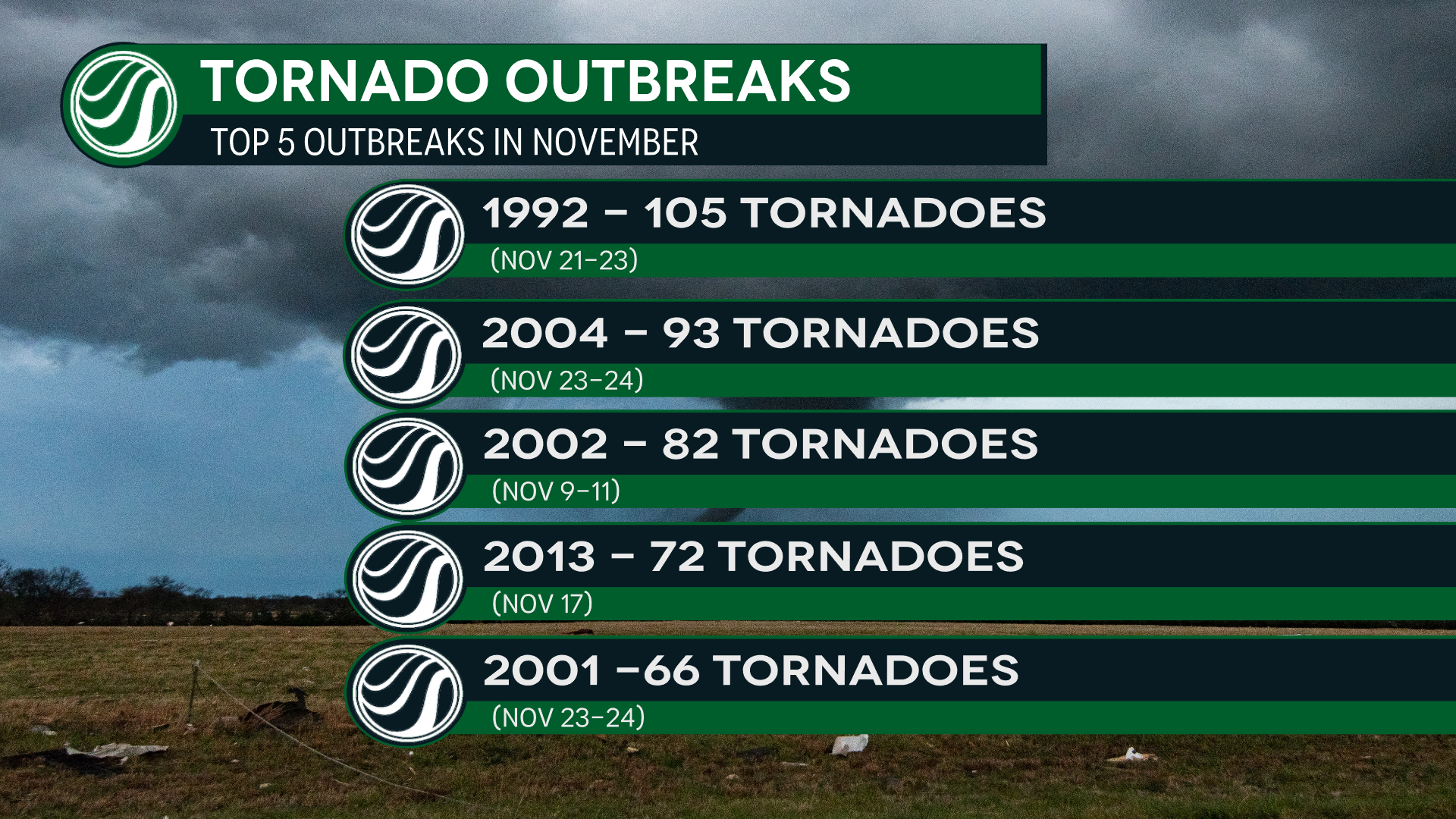While there may have not been an F/EF5 tornadoes in the past, there have been many significant tornado outbreaks in the U.S. during the month of November.