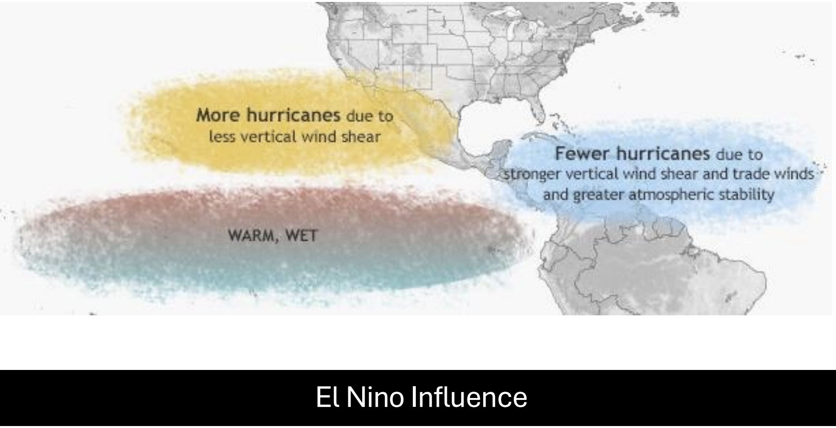 In his interview, Derik outlined a variety of meteorological and climatological factors that help determine the intensity of any hurricane season. Specifically, he mentioned the ENSO phase, sea surface temperatures, and average wind shear over the Caribbean and the Gulf.