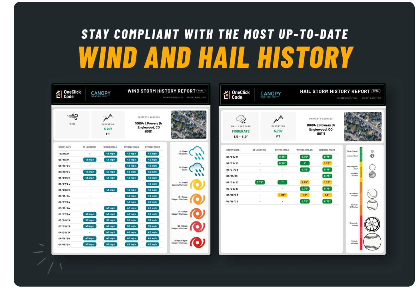 Both factors constantly evolve, and even small geographic differences can lead to entirely different outcomes. For example, just a few miles can mean a change in municipal roofing codes—or the difference between experiencing large hail damage or no hail at all. This highlights the need for precise weather reports and tools like OneClick Code to help local roofing contractors stay compliant.